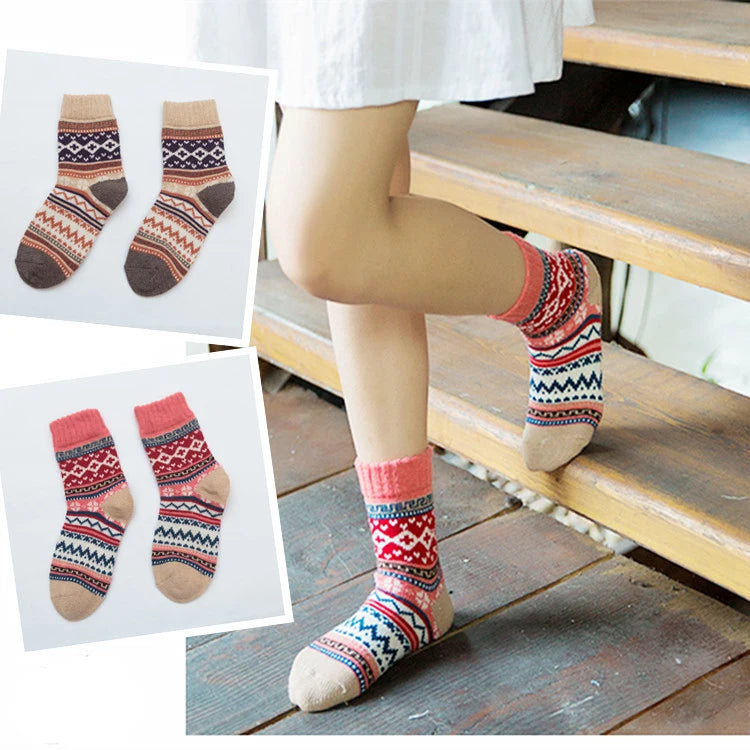 5 Pairs Women's Winter Socks | Retro Japanese Ethnic Knit Wool Blend