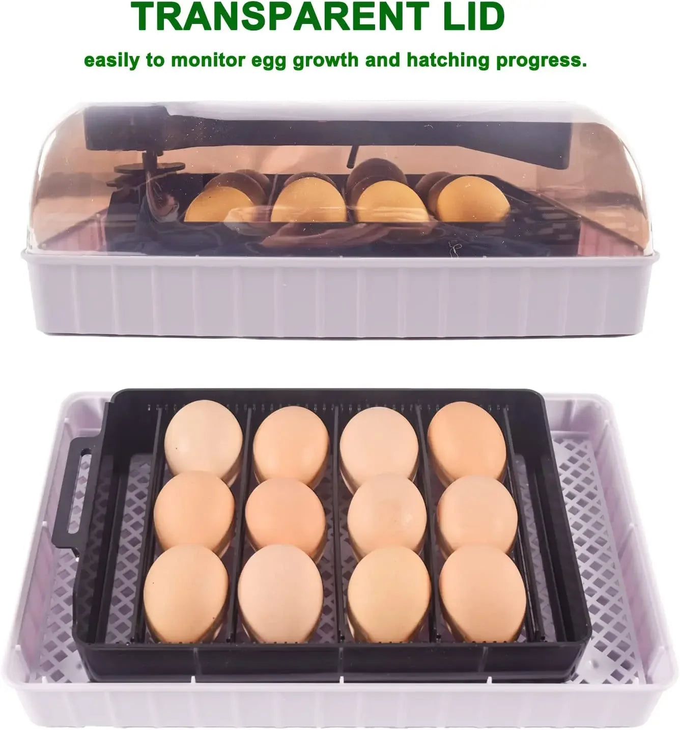 • 360° Clear Observation: The transparent lid allows you to monitor the entire hatching process without opening the unit and losing precious heat or humidity.
